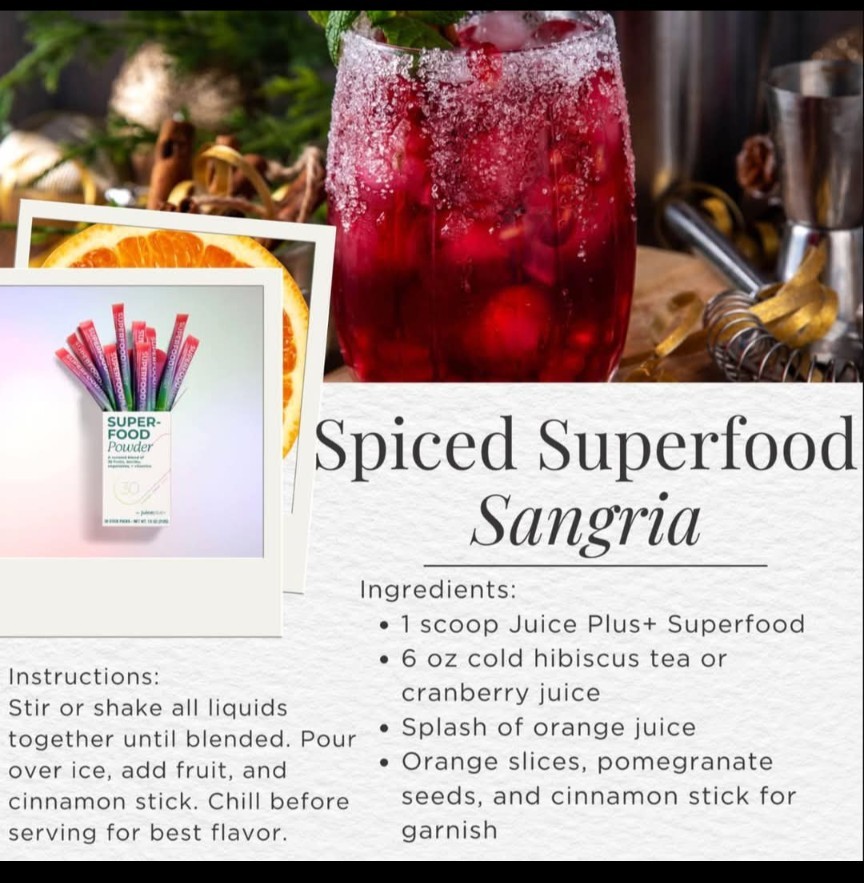 I know when the holidays are upon us it gets BUSY in all kinds of ways! And isn't it crazy with holiday parties, gatherings, and family time ... .is it just me or does it feel like we are eating ALL KINDS of sugar all the time from Halloween to mid January? Well this year I decided to share some of the healthier recipes that are from Juice Plus and my friends…..Enjoy and have fun getting creative.